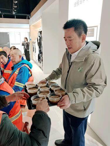此次“共品炒八掺”午宴,更是谷神燃气具大世界用心筹备的“专属暖心宴”。为了让环卫工们尝到最近很火热的郑州味道炒八掺,门店提前几天就学习炒八掺的制作技巧,从食材选购到火候把控都亲力亲为;活动当天,工作人员早早布置好场地,摆上热腾腾的饭菜和饮品,还有河南特色胡辣汤。“他们比咱自己还细心,知道咱爱吃啥,特意多放了一些食材。”环卫工刘师傅吃着暖心餐,话里满是感动。