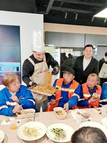 10月24日,秋日的郑州博世家电地标店里暖意萦绕,数十位环卫工围坐在长桌旁,瓷碗里的炒八掺冒着热气,美食的醇厚香气飘在空气中。“这味儿比家里做的还地道,吃着热乎,心里更暖!”环卫工李师傅舀起一勺杂粮分明的炒八掺,眼角满是藏不住的笑意。
